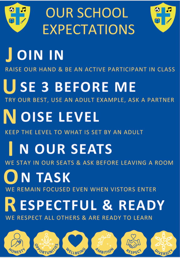 Our school expectations are clear, and also phrased so that all our pupils can understand and remember them. These are: