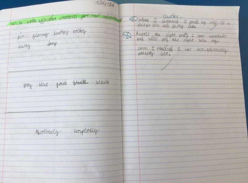 In English, we began our sentence stacking lessons focussing on the text 'Stone Age Boy'. We have looked at how the boy may have felt, used adjectives, adverbial phrases, verbs and prepositions.