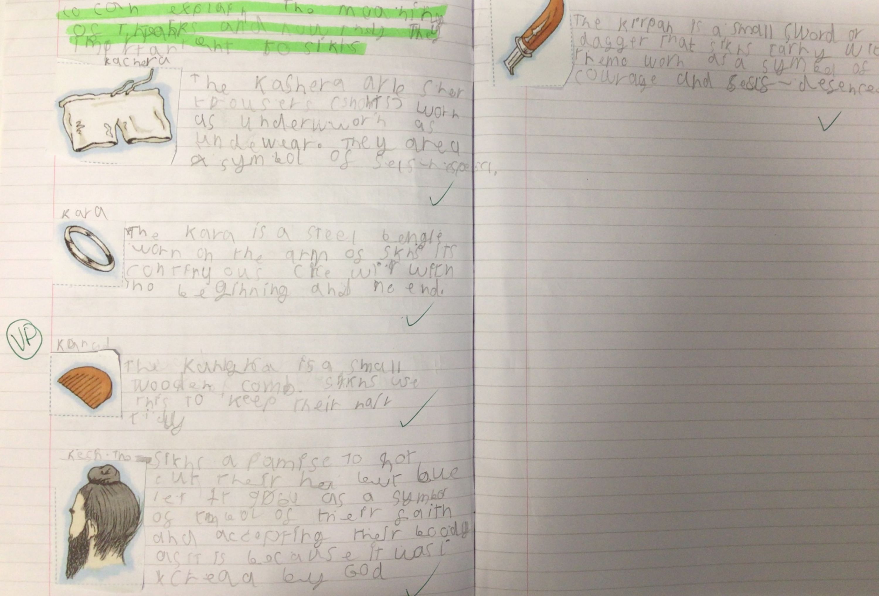 In R. E, we continued with our learning on Sikhism, where pupils looked and learnt about the 5K's and linked these to wearing a school uniform. Pupils worked in groups to match the images to the definition of each of the 5 K's.
