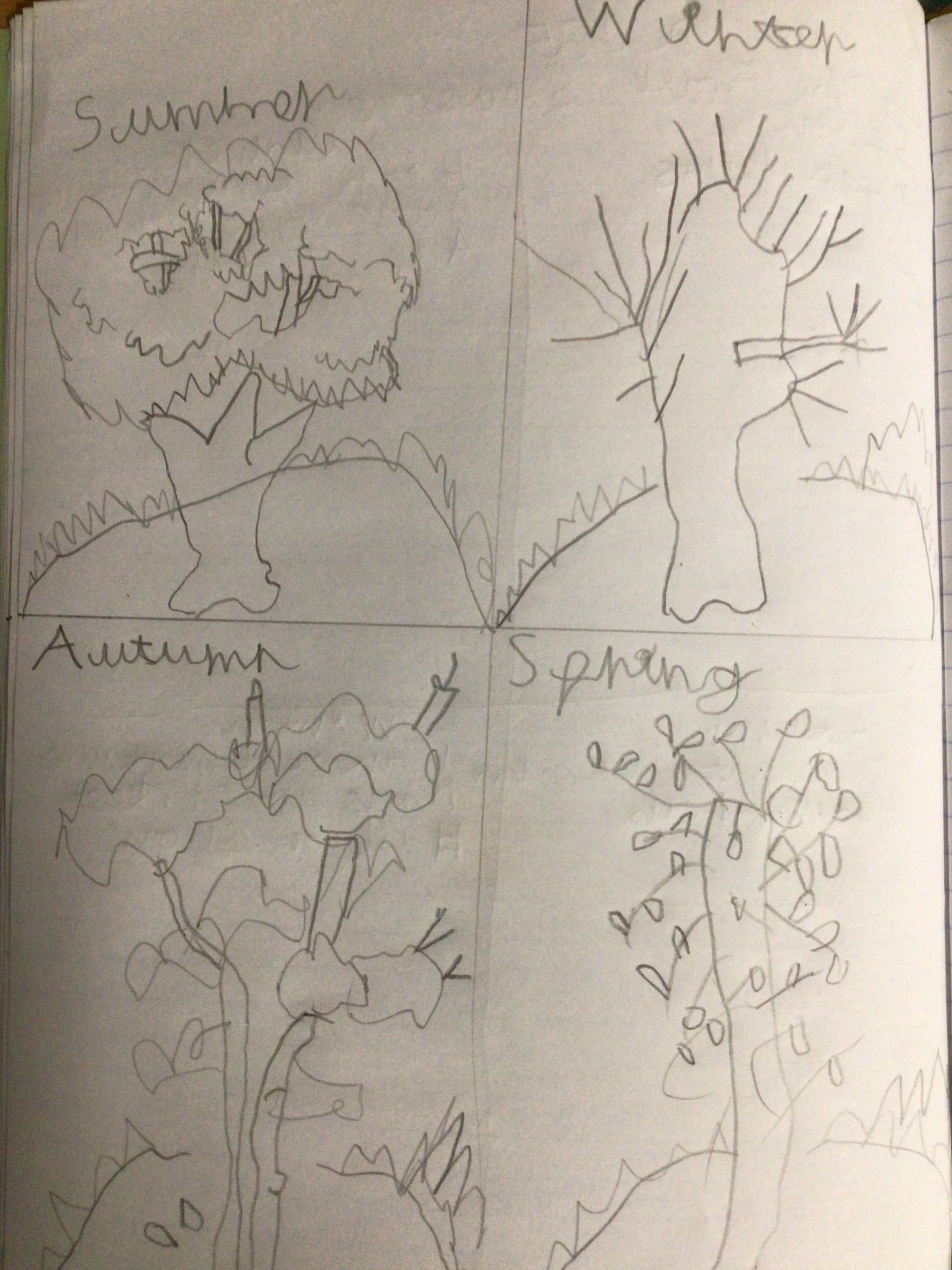 In Science, we looked at the seasonal cycles; Autumn, Winter, Summer and Spring. We discussed how the Earth tilts, the Southern Hemisphere, Northern Hemisphere and the changes that happen throughout the cycles, including the temperature, animals and sunlight. The children labelled the diagram, and then wrote information about each cycle in their books.