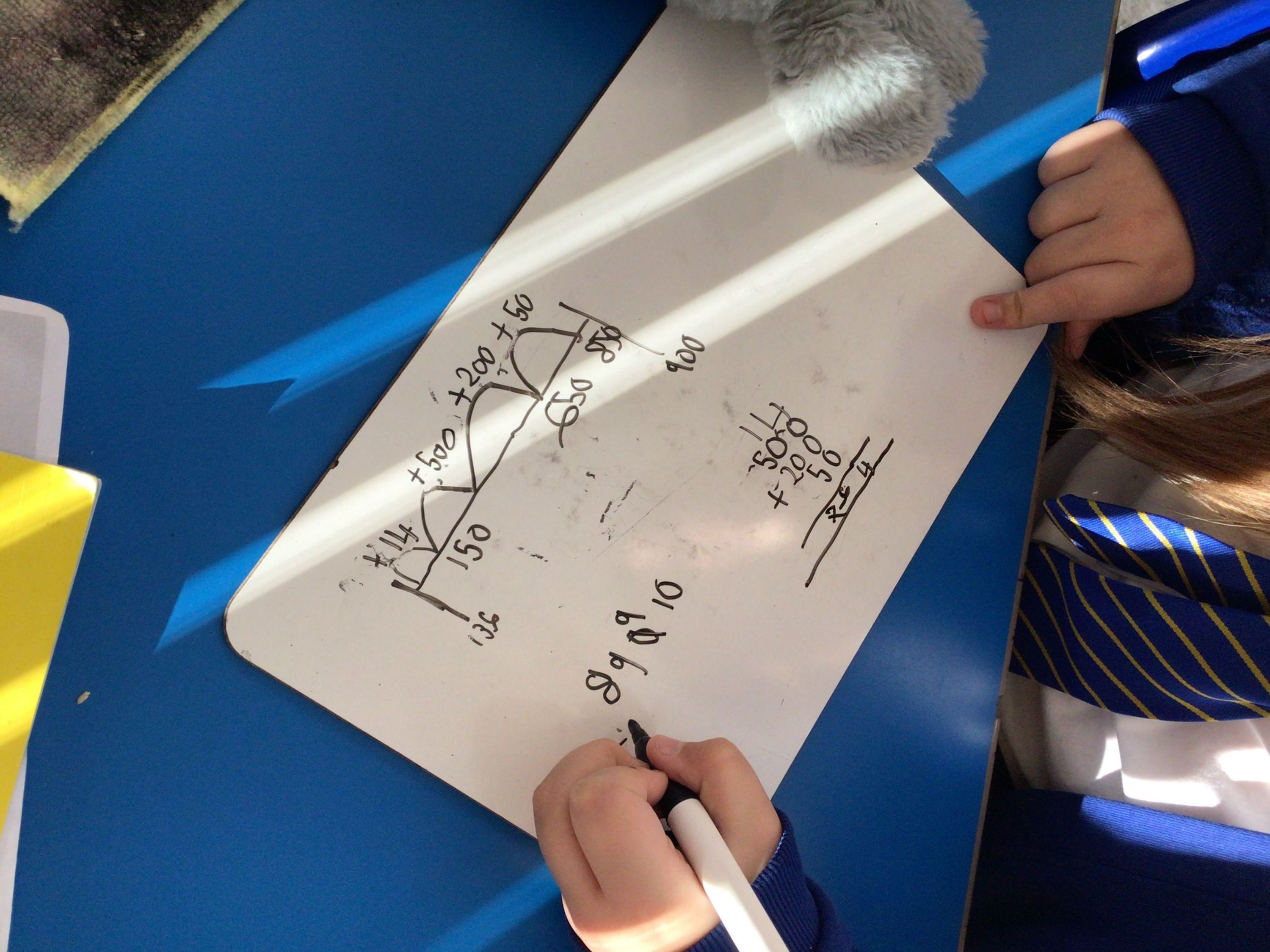In maths, we revisited some methods we've previously used to work out answers to questions, including the column method and number lines before we move onto our next unit. We used whiteboards to recap our previous learning, and shared and discussed these as a class.
