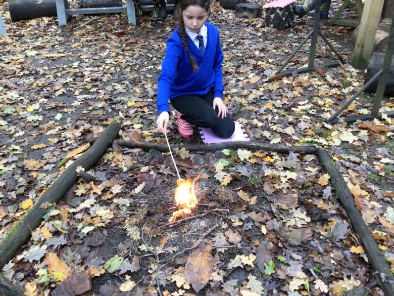 We also enjoyed our toasted toffee apples on the fire. We really enjoyed them last time and the weather is perfect for fires this time of year. We loved toasting and eating our toffee apples again. We lit the fire using flint and steel (we are taking it in turns each week to use and light the fire).