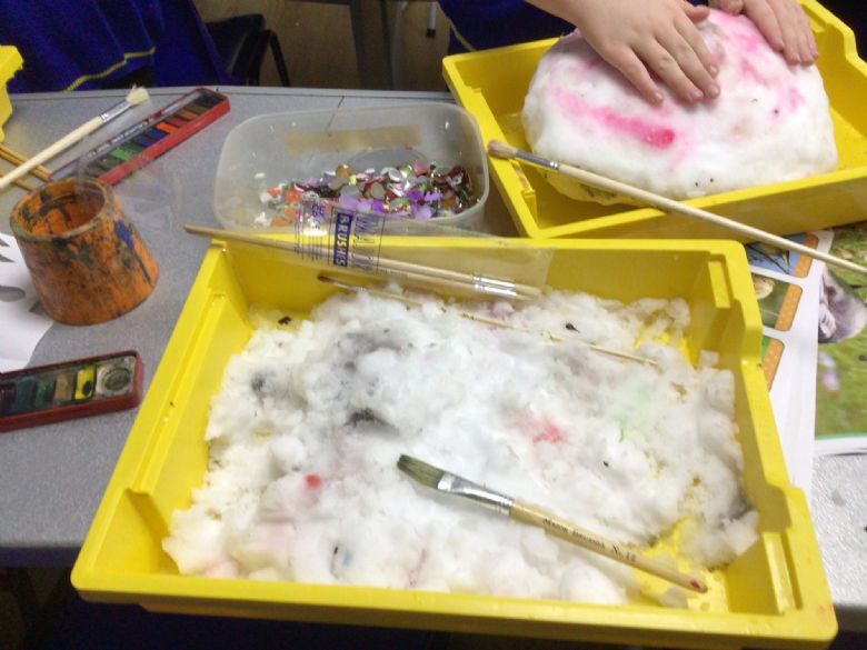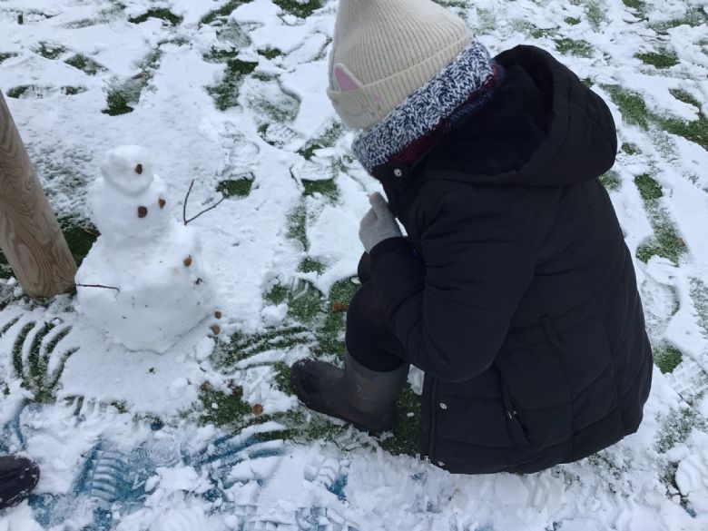 We had lots of fun with the sledge, experimenting with the snow, painting the snow and making snowmen!