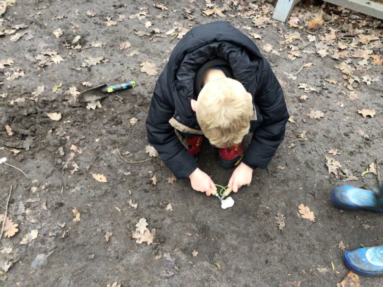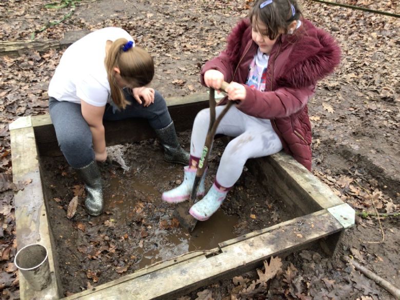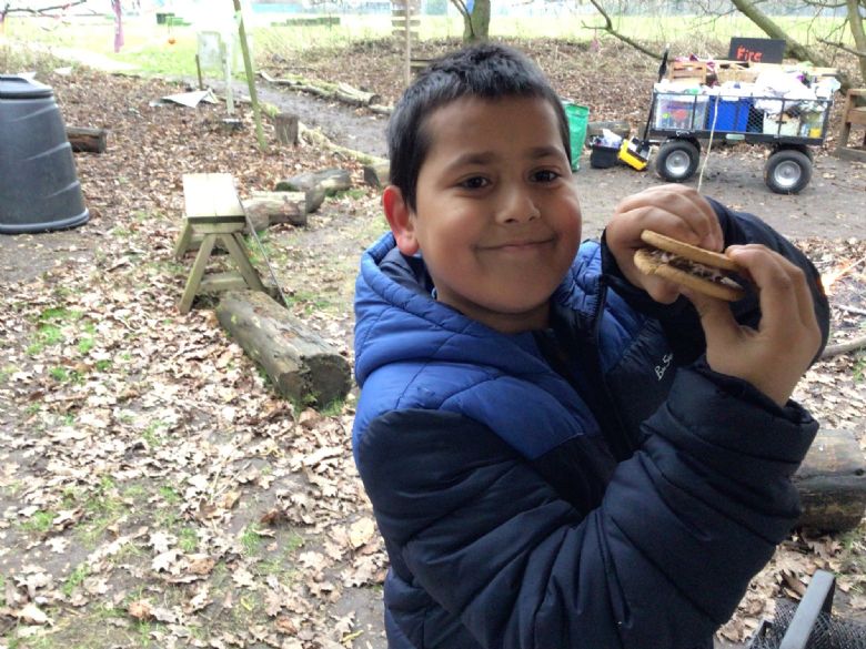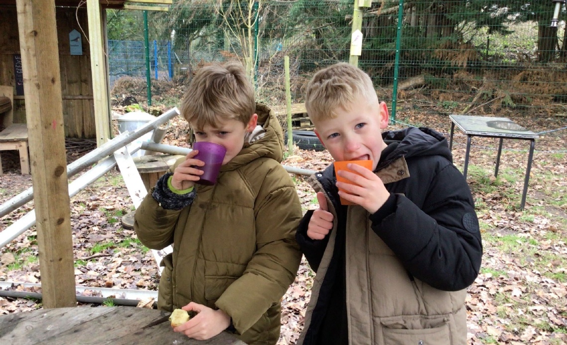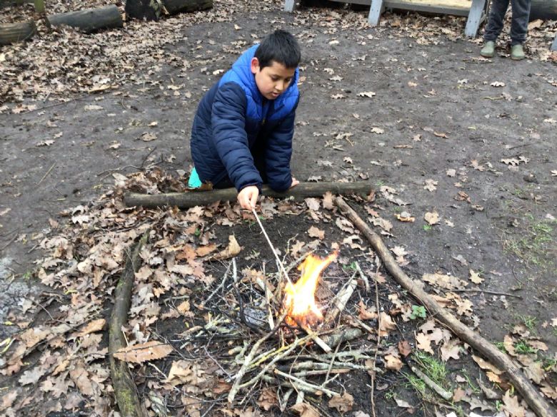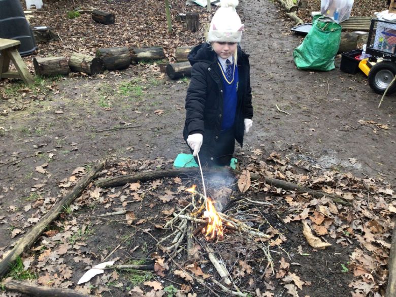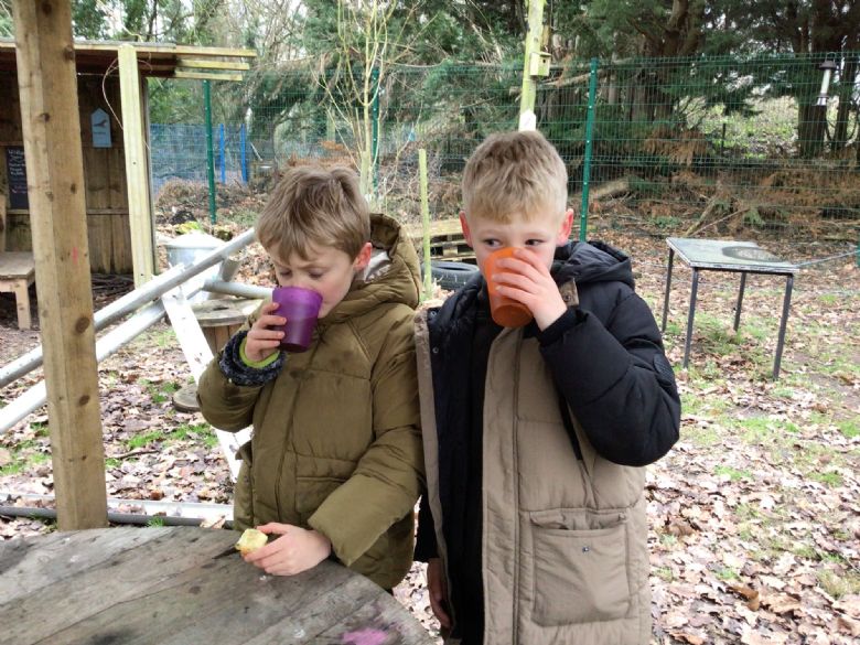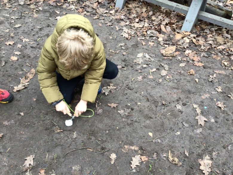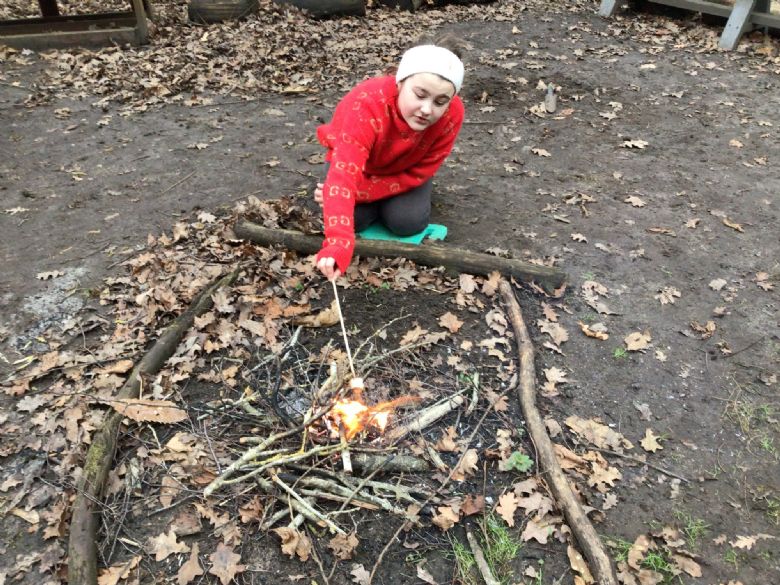 This week was a chilly one so we decided to have a hot chocolate around the Forest School fire area made using our Storm kettle. First we listened to our fire rules - the storm kettle can get very hot just like our fires in the middle so we need to be very careful when it is lit and hot. We then prepared the storm kettle by breaking up small sticks for the fire in the middle, when this was done we lit the kettle and waited for the water to bubble so we knew the kettle was ready for hot chocolate. It was very yummy and kept us all warm!