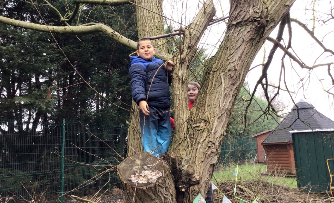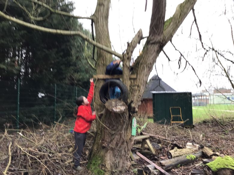 Some of us showed great team work skills by building a tree house in one of our trees at Forest School, gathering materials and using them to build steps up to the tree.