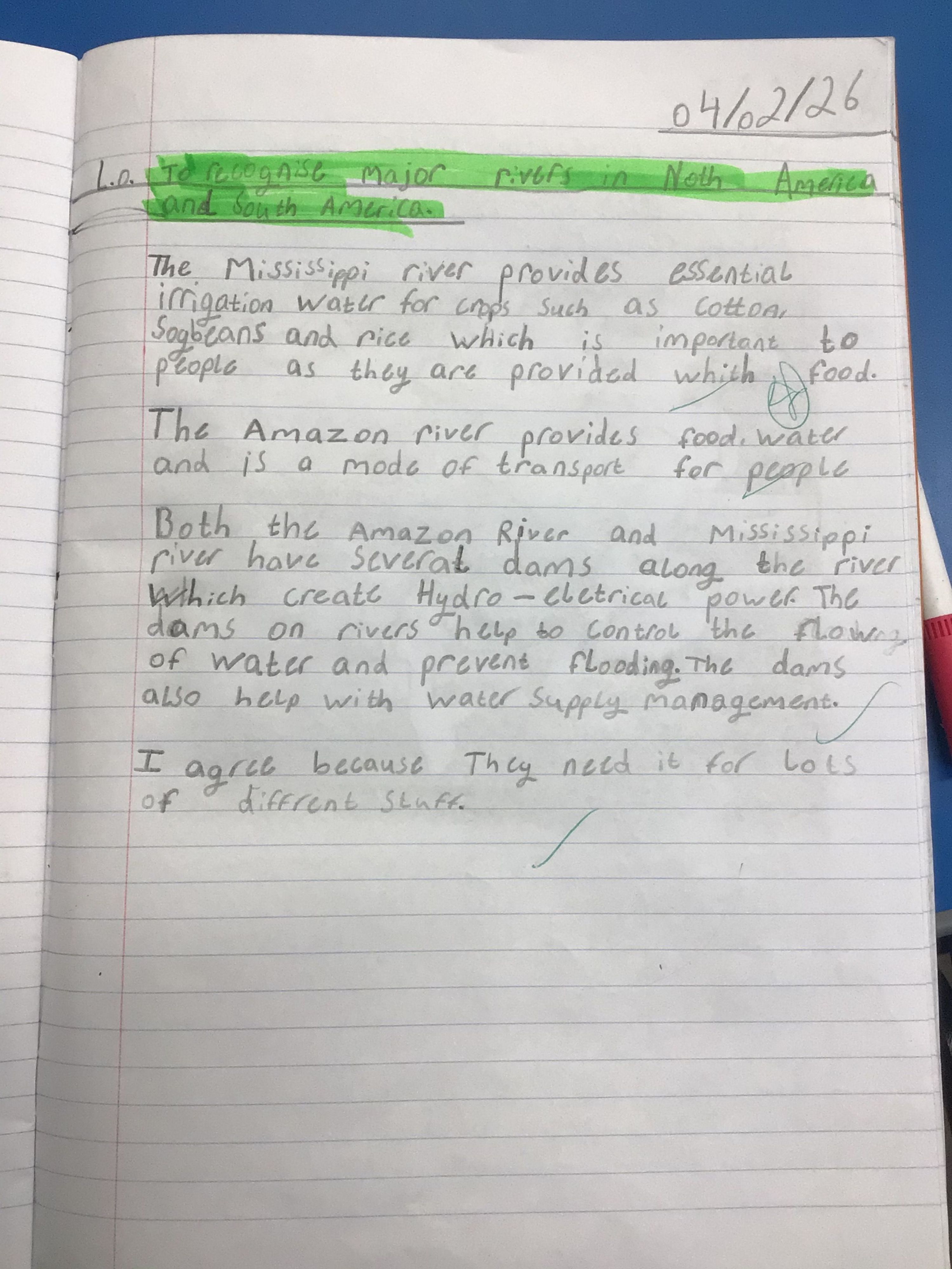 In Geography, we looked at the major rivers in North America, learning about the sources, the mouth of the Mississippi and the Amazon, alongside the importance of these rivers and why they have dams.