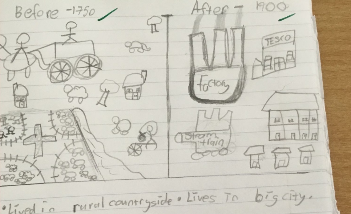 History: The industrial revolution  - a move from cottage industry to mass manufacturing
