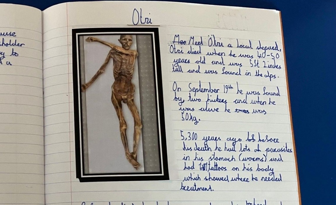 In History, we examined the reign of King Louis XVI and how he was eventually overthrown. Our geography work explored the Alps mountain range and the fascinating story of Otzi the Iceman – We created a fact file on Otzi (pictured).