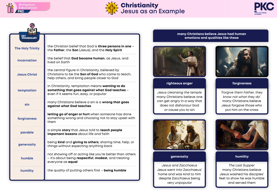 This unit explores a central concept in Christianity—Jesus as the most significant and respected human figure. Building on the Year 3 unit Jesus as an Inspiration, where children learnt about the Trinity (One God in three forms), this unit deepens their understanding of Jesus as God in human form.